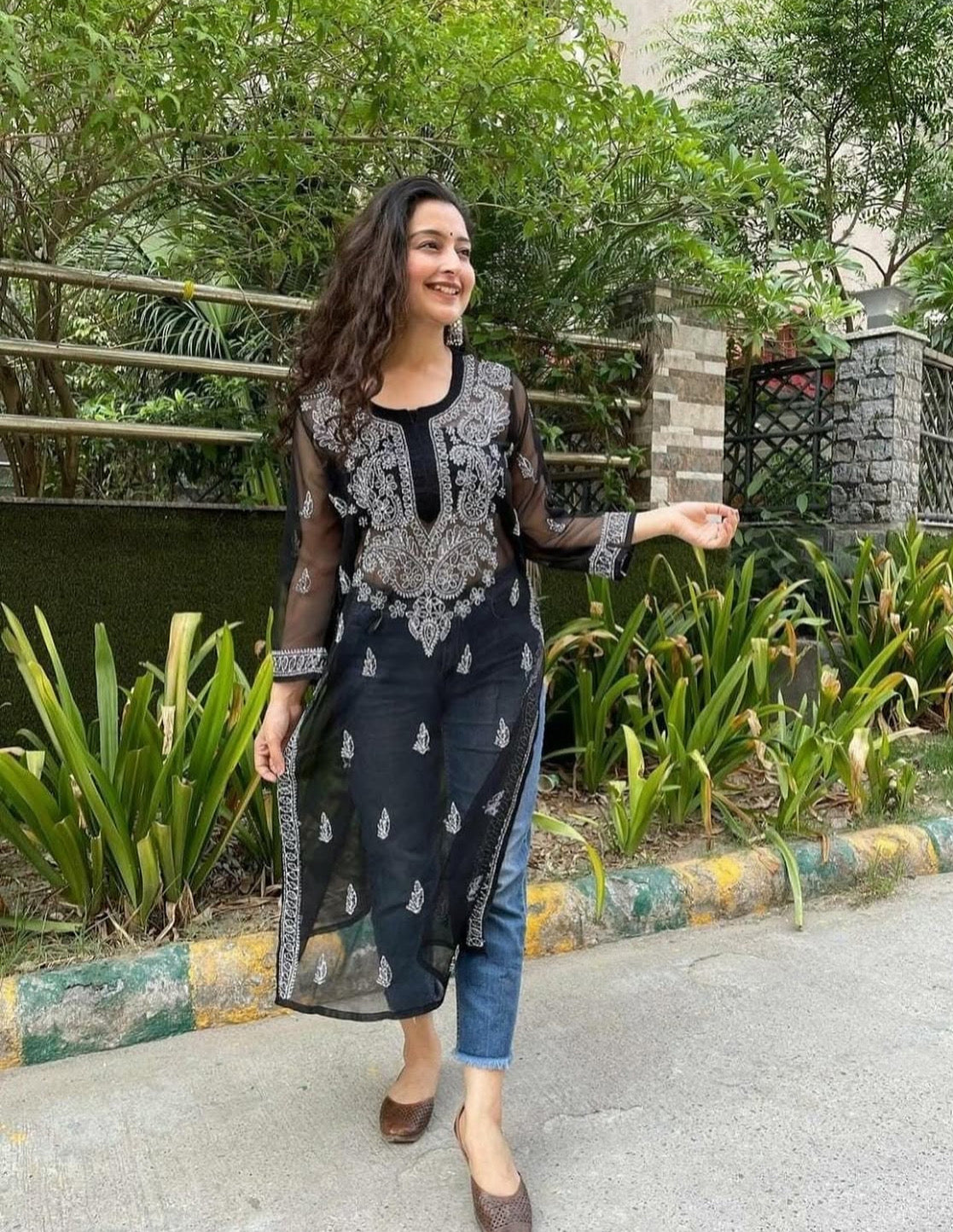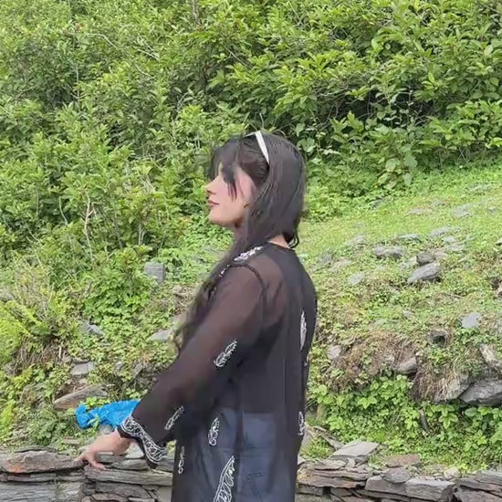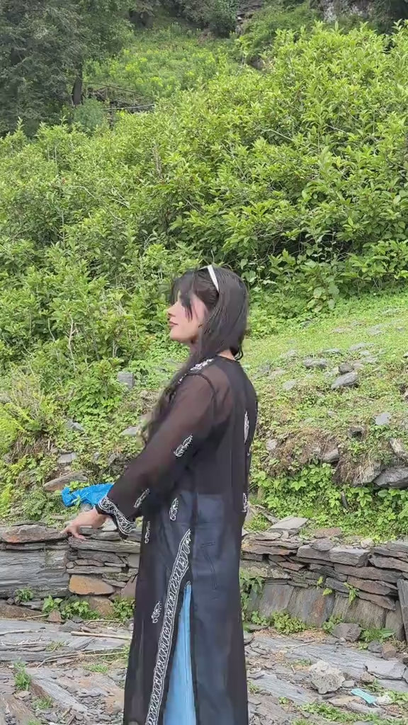 Black mirror work chikankari chiffon kurti